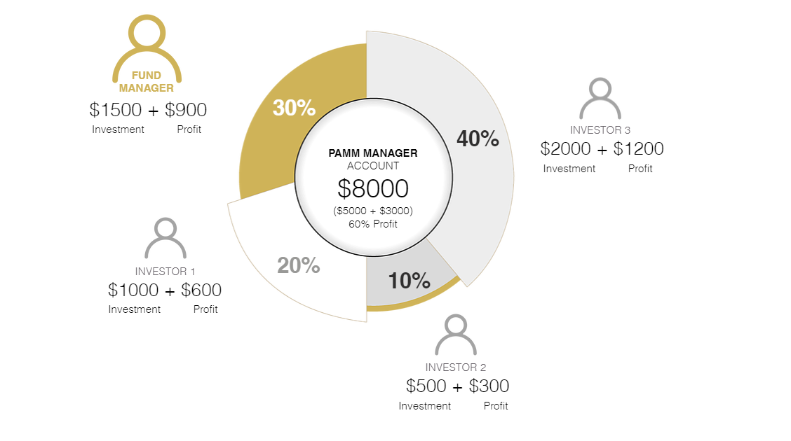 PAMM Managers trade using invested capital (Manager's Capital) and the funds of any investors in the account. Simply put, any profits and losses generated on the PAMM Manager's Account will be shared between all accounts that are invested in the PAMM Manager on a proportional basis.